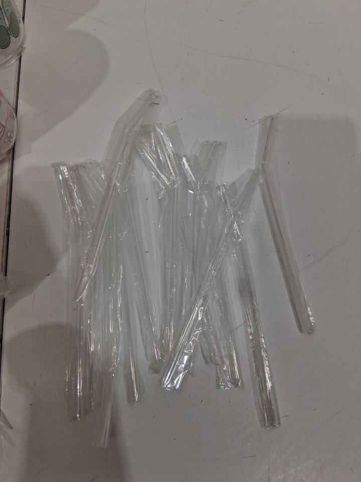 item is missing 12 straws 7 of them are clear the remaining have assorted stickers/ designs on them (see photos)