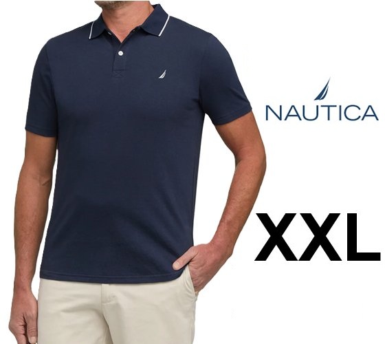 Mens Nautica Short Sleeve Jersey Polo Shirt - XXL - Navy Blue (Style: 1958509)