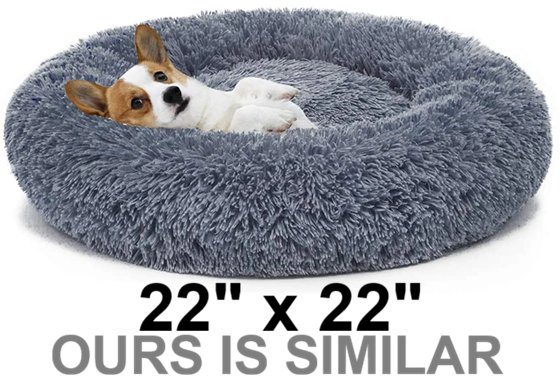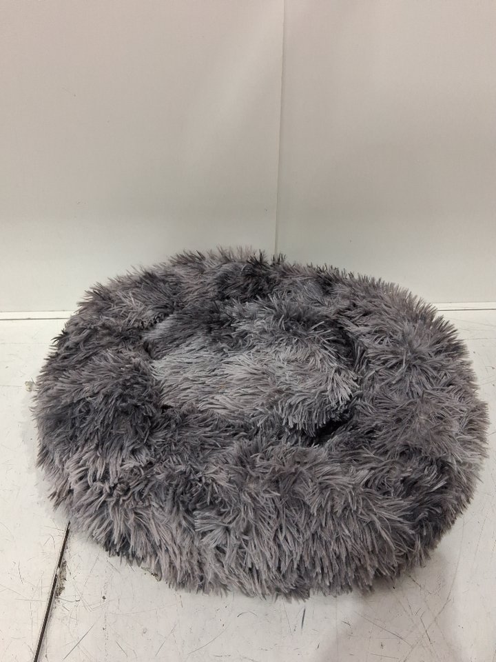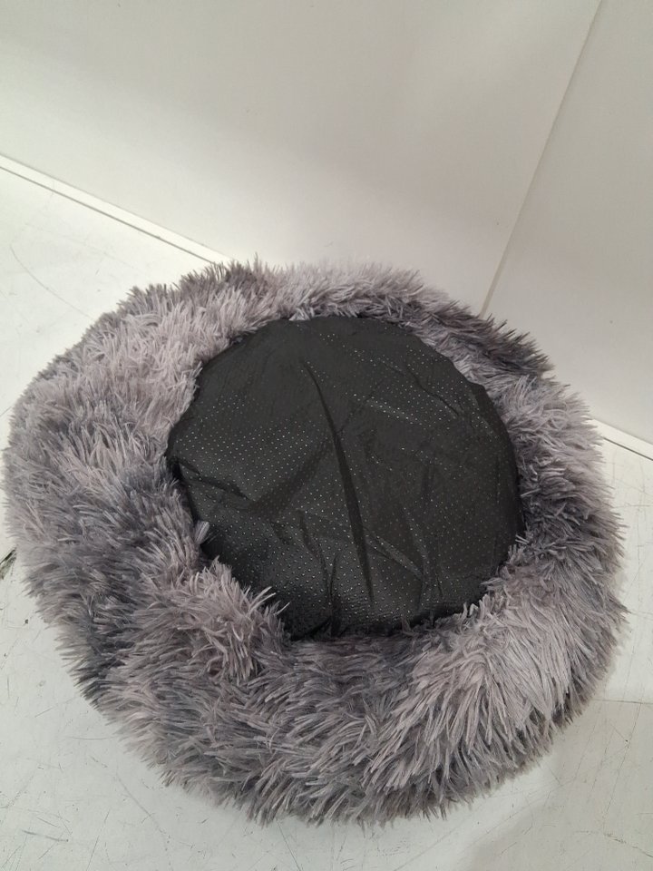 PLUSH CALMING FAUX FUR SHAG DONUT CUDDLER PET DOG/CAT BED - 22" - grey