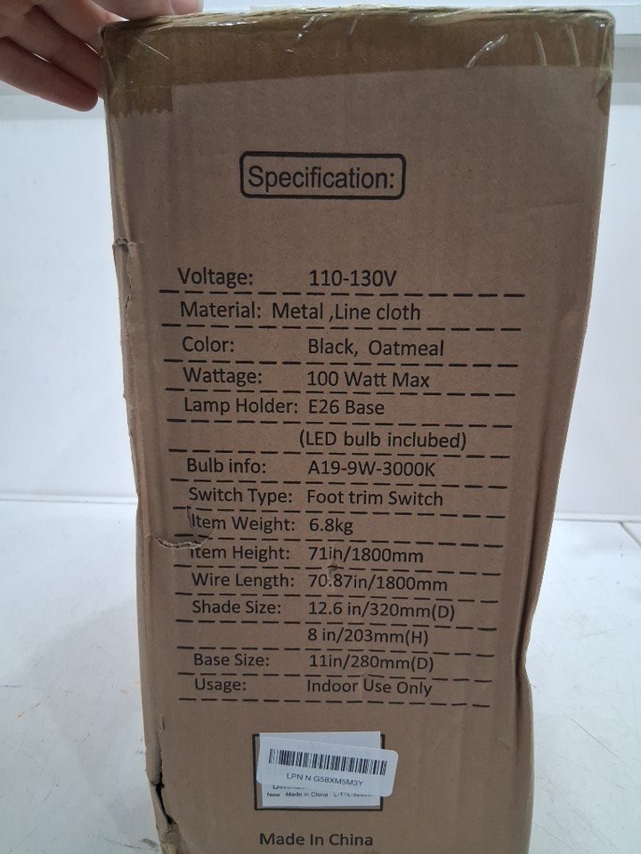 Dimmable Arc Floor Morden Standing Lamp with Adjustable Hanging Shade - 71" - Black/Oatmeal (Model: F00086)