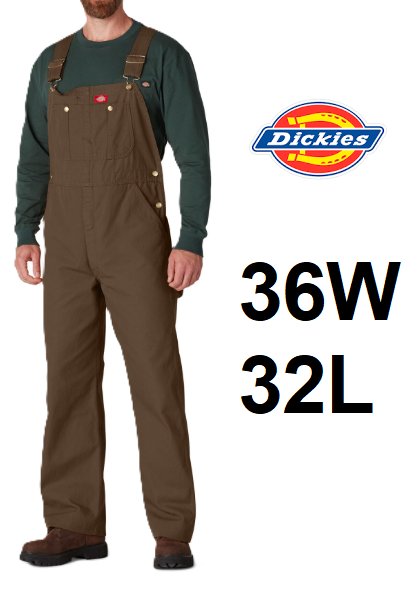 Men's Dickies Bib Overalls - 36W X 32L - Rinsed Timber Brown - (STYLE: DB100RTB)