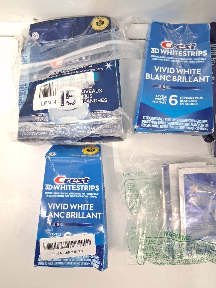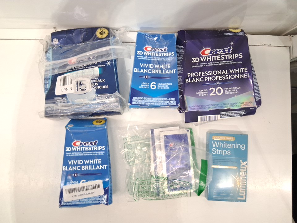 6 assorted teeth whitening products - assorted brands and types - crest / lumineux