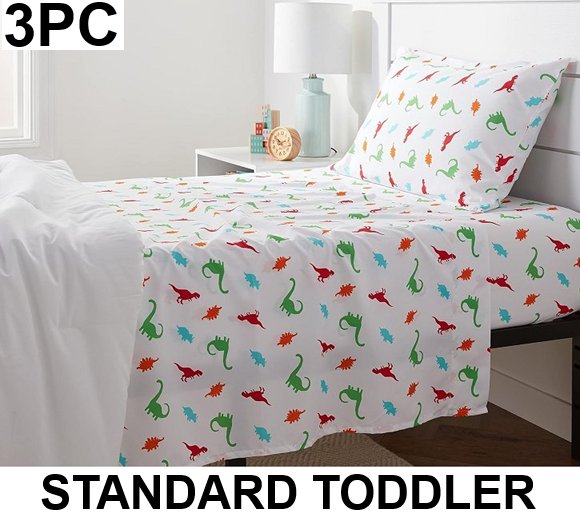 3PC Kid's Amazon Basics Soft Microfiber Sheet Set - Standard Toddler - Multi-Color Dinosaurs