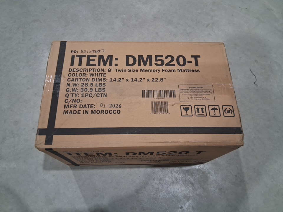 Unbranded Memory Foam Bed Mattress - Twin - 8" Thick - White (Model: DM520-T)
