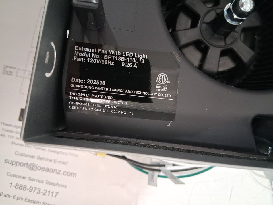 JOEAONZ Bathroom Exhaust Fan with Light - 10" x 10" x 5.7" - White - (Model: BPT13B)