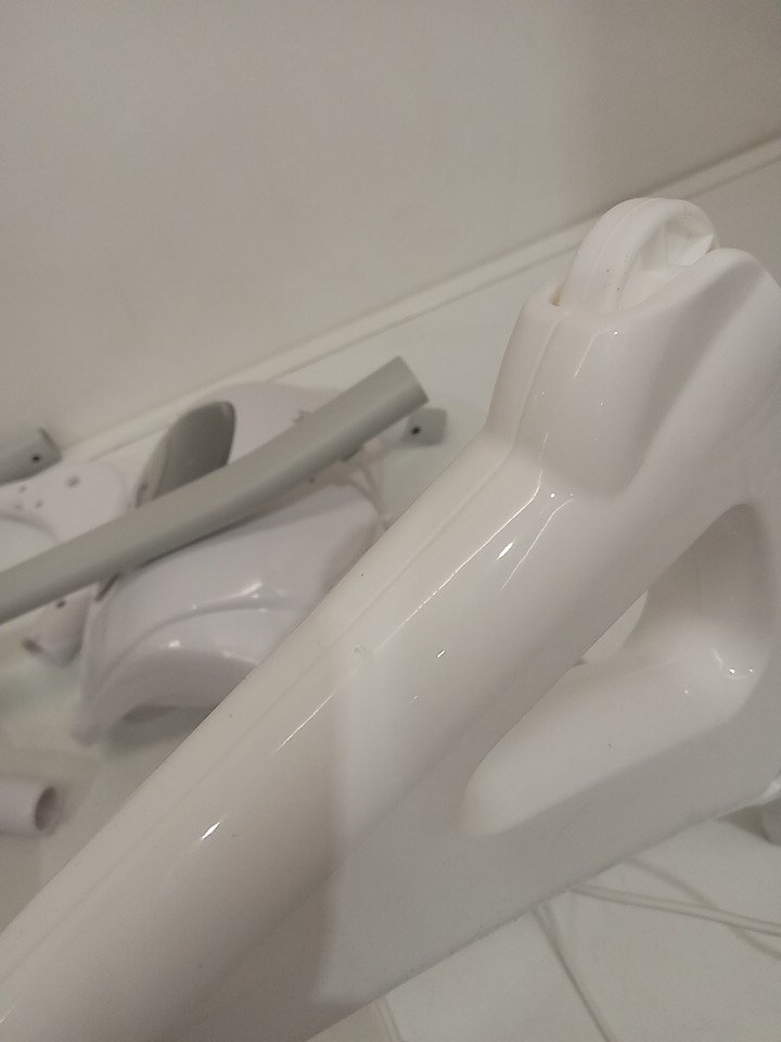 their is some slight fraying / decolorization on the pieces of this item and some of the pieces were found already put together ( the rumble pack was already attached) these are due to previous assembly. all vital parts for assembly are present, this item has been tested for power and is confirmed to be working. no batteries included.