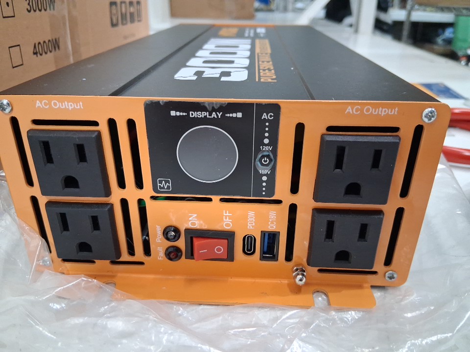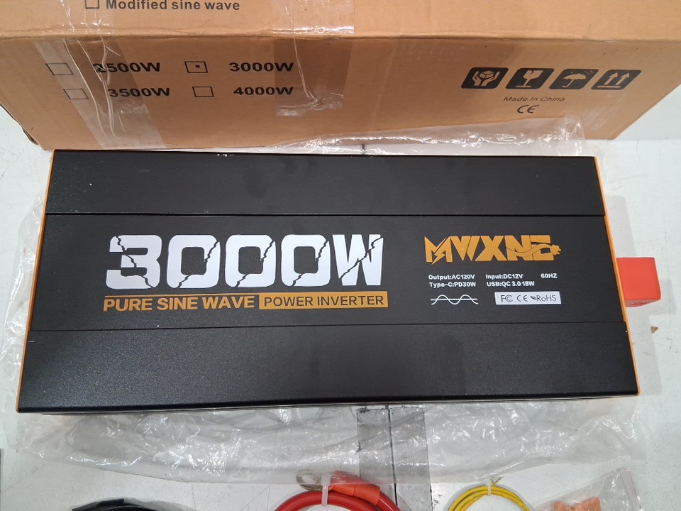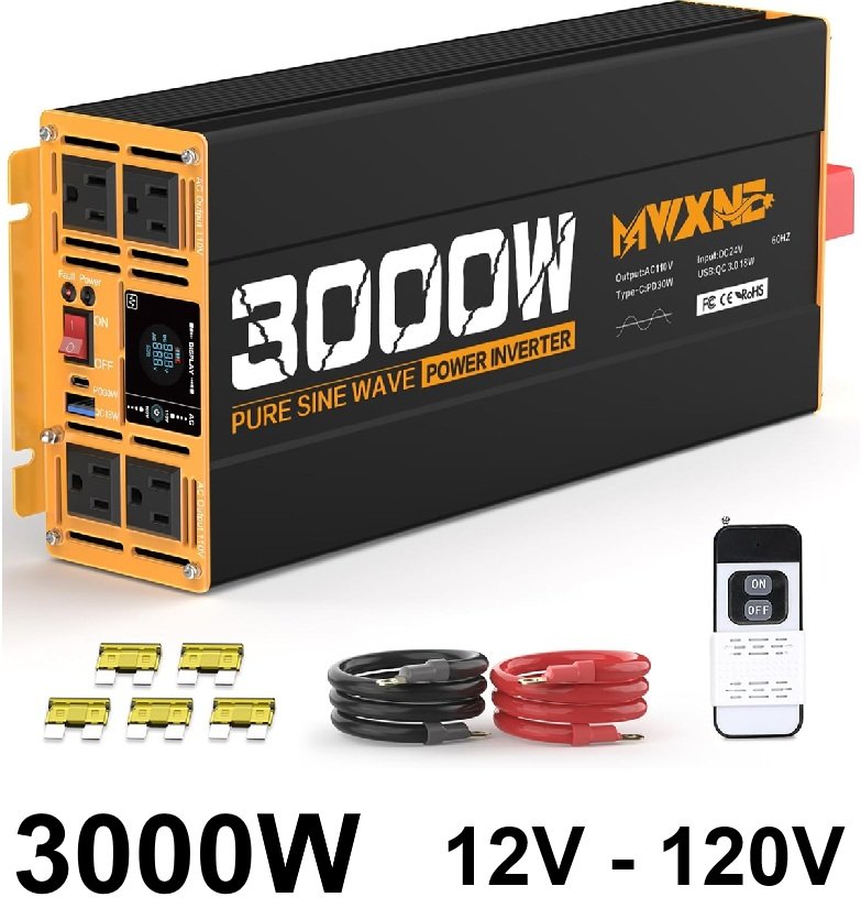 MWXNE DC 12V to ac 120V Pure Sine Wave Power Inverter with Type-C Fast Charging and 3 USB Ports - 3000w - black/orange (model: mwj3000w-12v-b3)