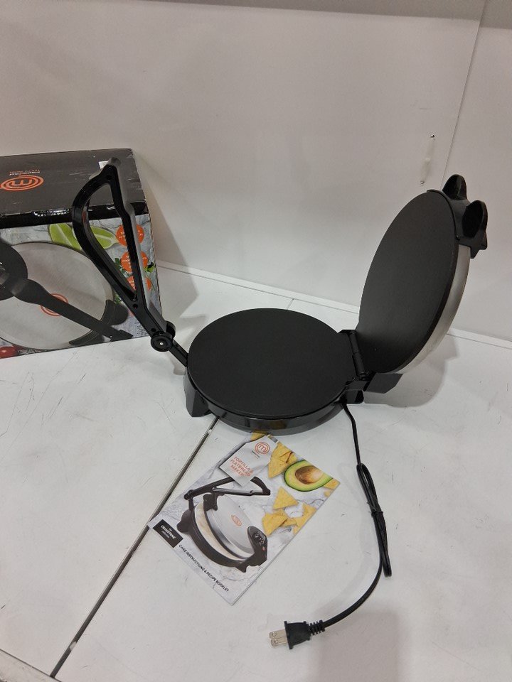 MasterChef Electric Tortilla and flatbread Maker - 10" tortillas - silver/black (MODEL: mtf-tfm-702)