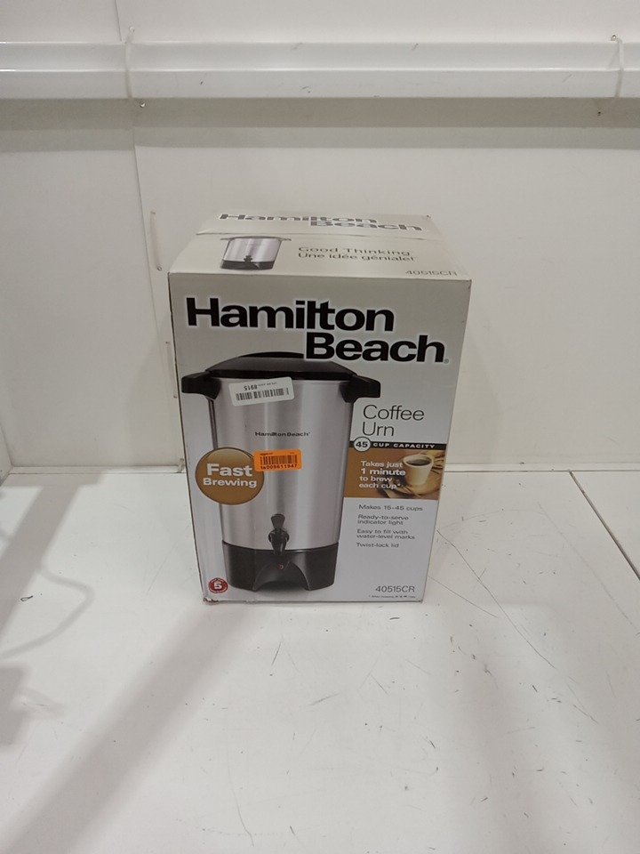 HAMILTON BEACH COFFEE URN - 45 CUP CAPACITY - STAINLESS STEEL (MODEL: 40515CR)