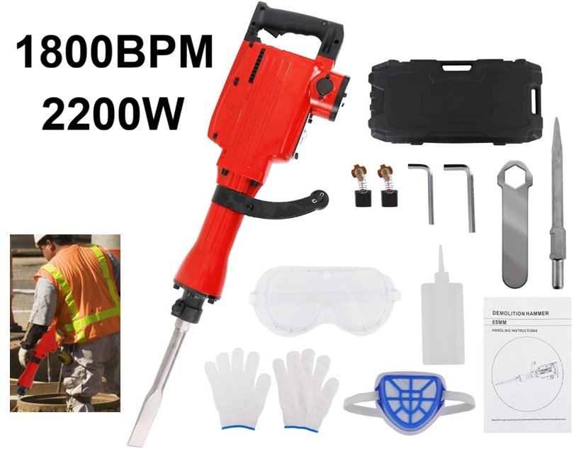 Carivia Demolition Jack Hammer Concrete Breaker with 2 Chisels, Gloves & 360°C Swiveling Front Handle