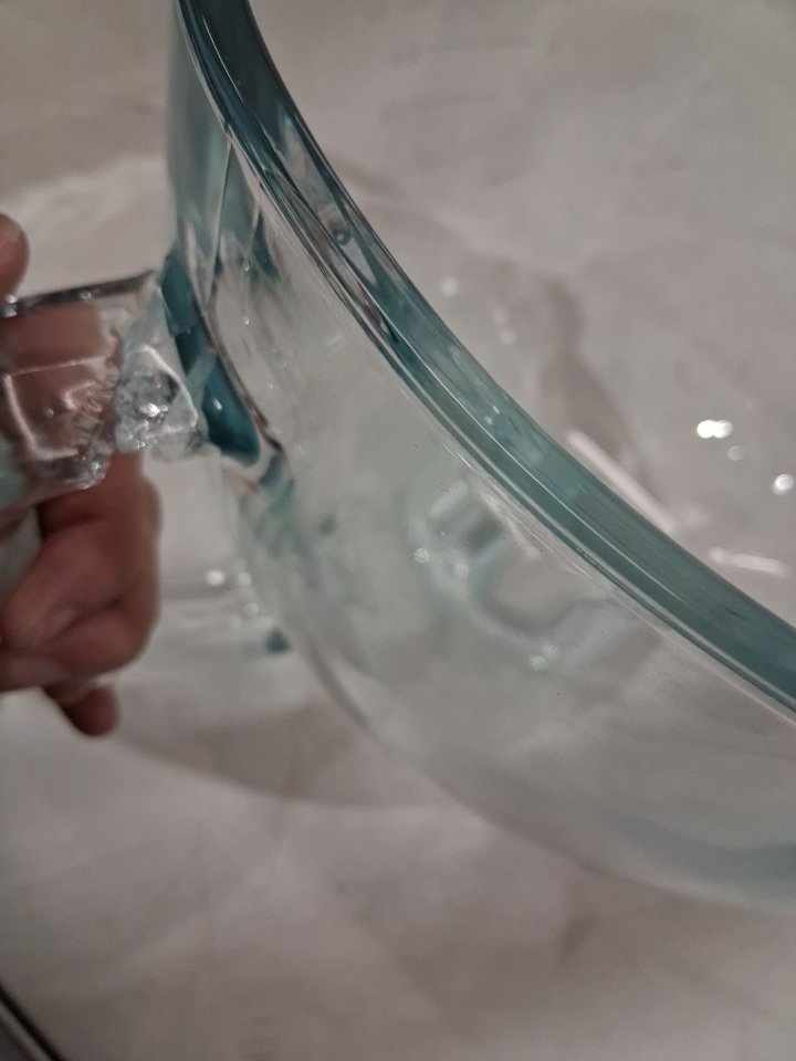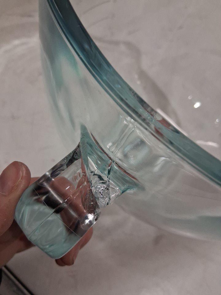 The handle for glass bowl is cracked from shipping, see photos.