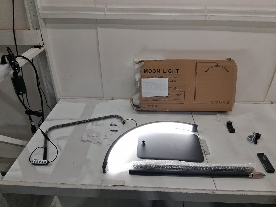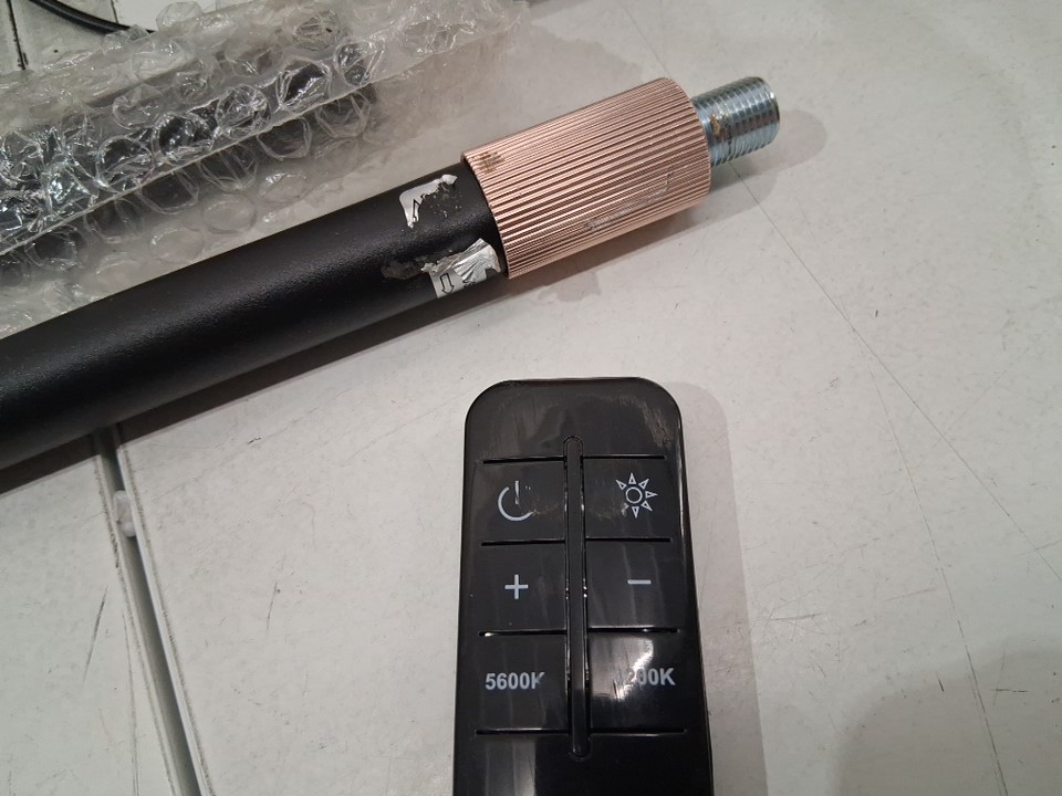 There are some scratches on the rod pieces and the remote, but it is unclear if it is from being handled/used or from being shipped in distressed packaging. Please note that the remote was working at the time of inspection, but it doesn't always function properly and may require several button presses to use (see photos) Tested for power