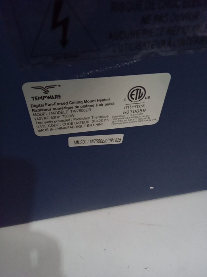 tempware Electric Garage Heater Digital Fan-Forced Ceiling Mount Shop Heater with Full-Function Remote - 5000W 240v - blue - (model:tw5000er)