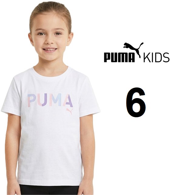 girl's puma short sleeve logo tee shirt - 6 - white / pink (style: 2663986)