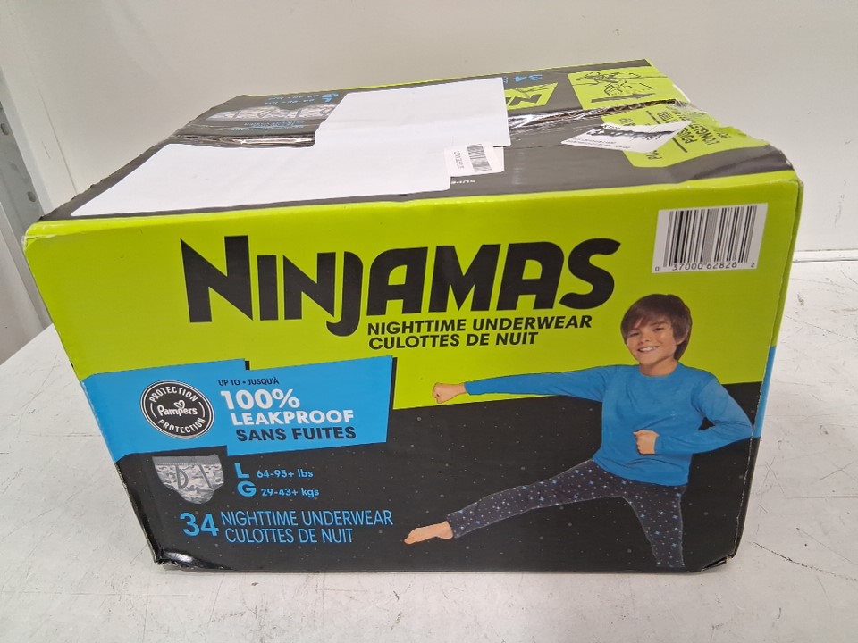 34PK UNISEX YOUTHS NINJAMAS NIGHTTIME UNDERWEAR WITH ODORMASK & ALL-NIGHT LEAK PROTECTION - LARGE - BLUE/GREEN/WHITE