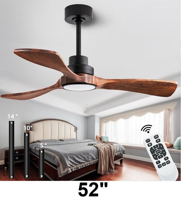 dearnow 6-Speed Timer Function 3 Wooden Blade remote Control Ceiling Fan Light - 52" - black/walnut (model: HR-698)