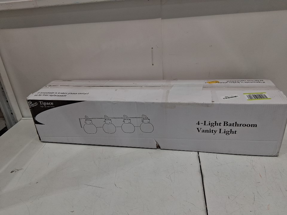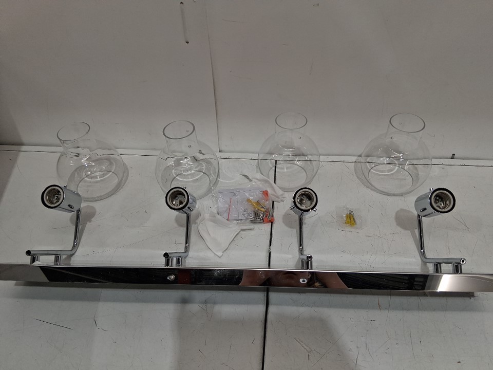 tipace MODERN 4-light bathroom vanity light fixture, Chrome Finish with Globe Clear Glass 31.5" - STAINLESS STEEL (model: ‎L-7491-4t)