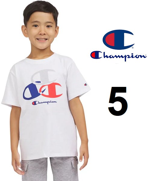boy's champion logo short sleeve 100% cotton tee shirt - 5 - white (style: 1382222)