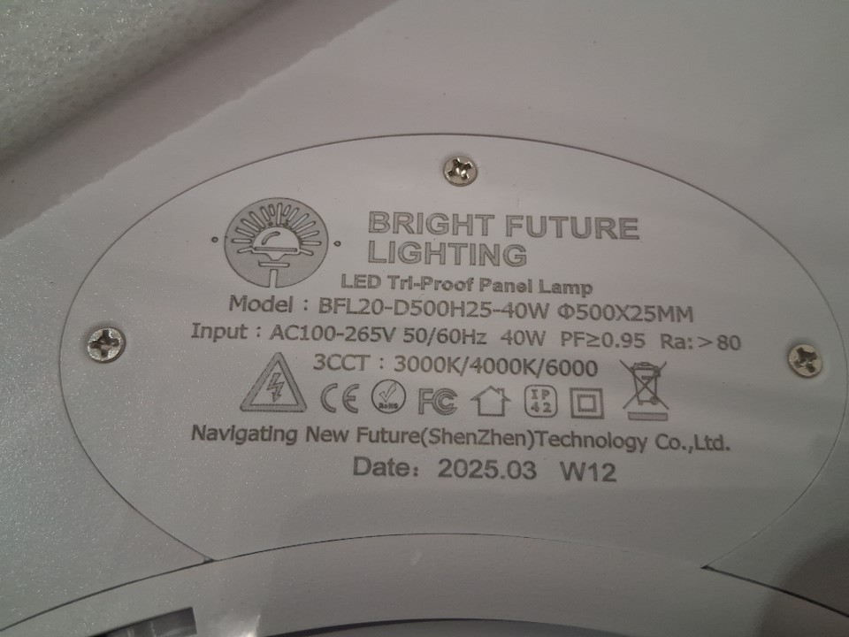 2pk bright future lighting dimmable led tri-proof panel light fixture - 20" - 40w - 3000K to 6000K - white (MODEL: bfl20-d500h25-40w)