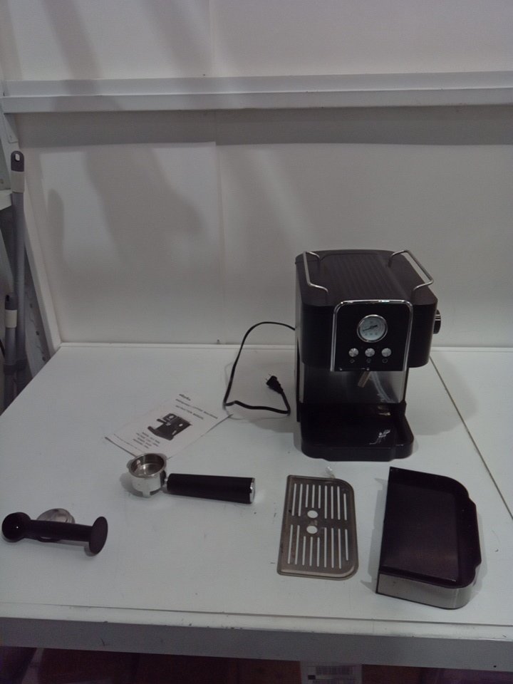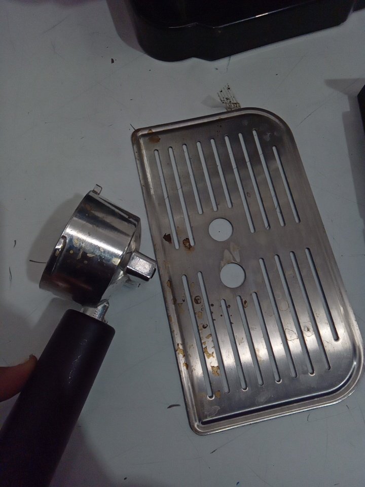 appears to have some coffee stand on the press and the drip tray. please note that there is some water droplets in the water tank. all can be cleaned.