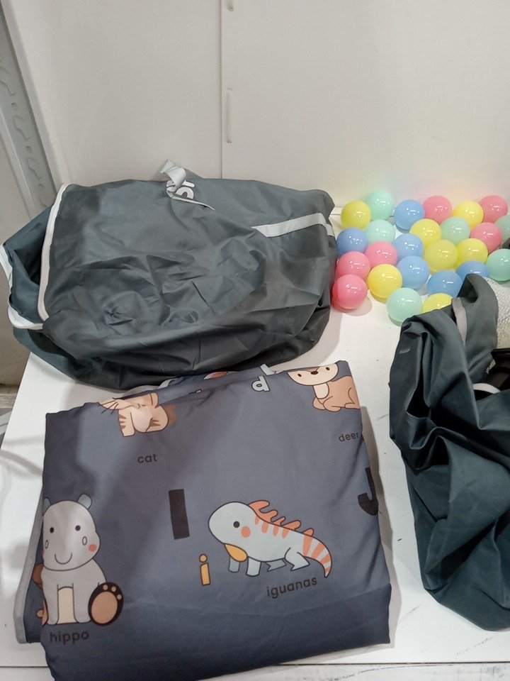 SPRX FOLDABLE Playpen WITH Mat ANd play BALLS - 50" x 50" - GREY/animals (model: bp-g1-50*50)