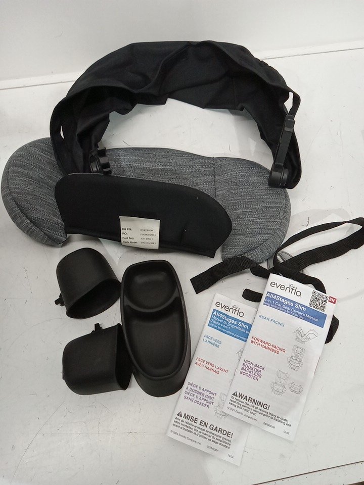 evenflo all4stages slim plus canopy carseat - 4-40lbs/30-65lbs - black/grey (model: cs400112527c)