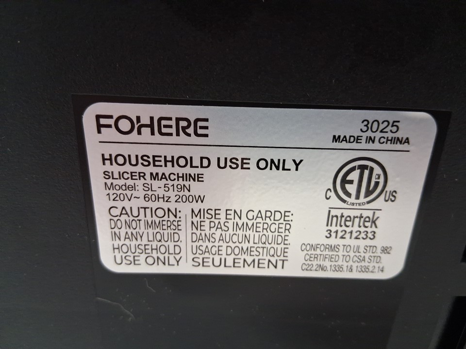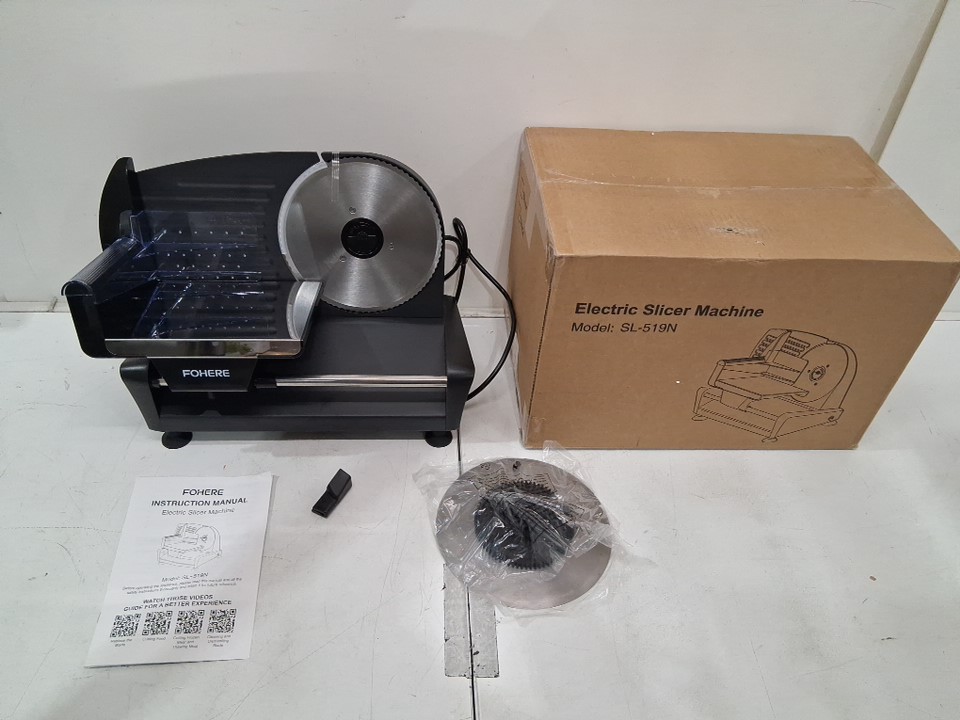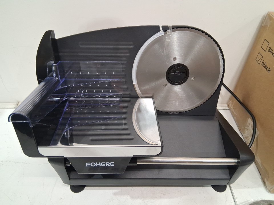 FOHERE Meat Slicer Machine with precise 0-15mm Adjustable Thickness AND Food Pusher - 7.5" BLADE - BLACK (MODEL: SL-519N)
