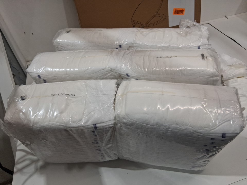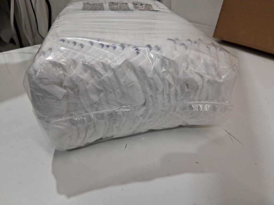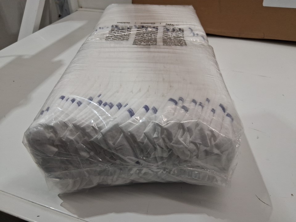 3 sealed packs came without a retail box, so we had to open one and pull out a single diaper to get the measurement code