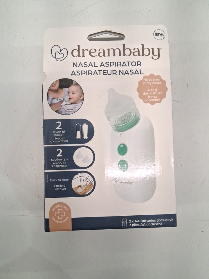 dreambaby battery powered nasal aspirator with 2 Suction Levels - white/green (model: LC377)