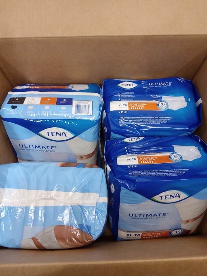 (4) 11PK ADULT'S TENA ULTIMATE EXTRA UNDERWEAR -extra large (44 total) - 55-56''