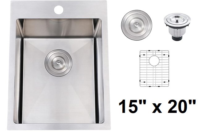 ricinun stainless steel Top mount Small drop in Bar Sink - 15" x 20" - stainless steel (model: JB024S)