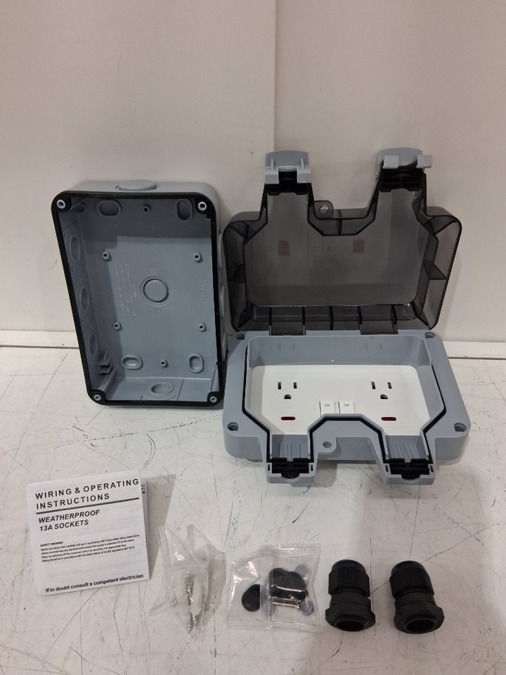weatherproof outdoor switched socket with on/off switch - white/grey (model: ip66)