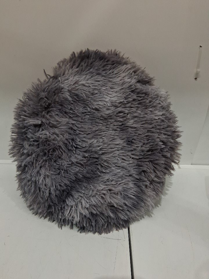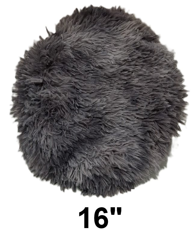 Round plush Fury pillow with anti-slip backing - 16" - greyish/purple