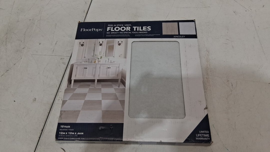 10Pk FLOOR POPS! KINGLSEY PEEL AND STICK VINYL FLOOR TILES - 12" X 12" - NATURAL/OFF-WHITE (STYLE: FP5060)