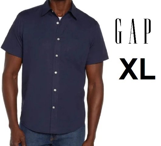 MEN'S GAP SHORT SLEEVE button down SHIRT - extra large - navy (STYLE: 1860008)