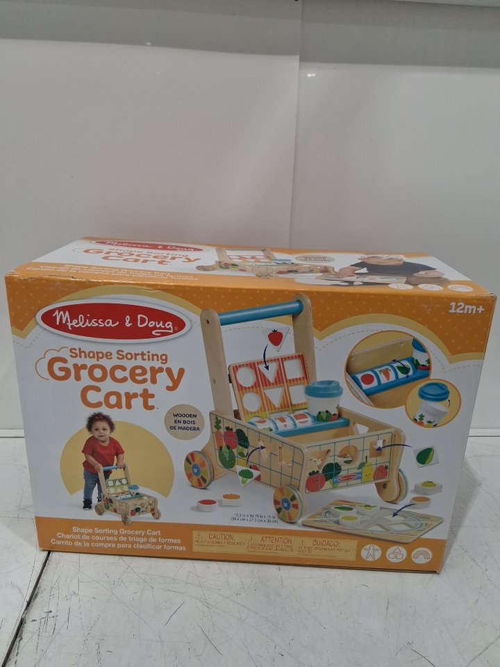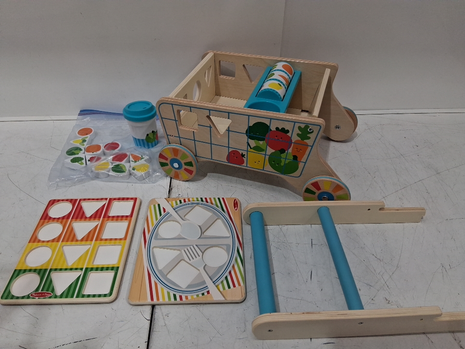 16PC Melissa & Doug Wooden Shape Sorting Grocery Cart Push Toy and Puzzles (MODEL: #30732)