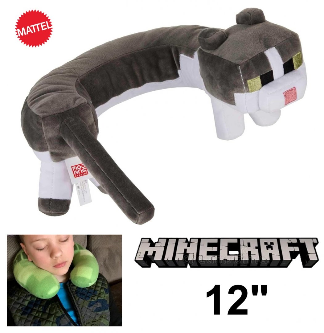 Mattel Minecraft Cat Neck Plush Pillow - 12" - White/Grey (Model: JGR36)