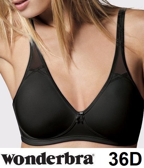 WOMEN'S WONDERBRA NO-POKE, SIDE-STAY, WIRELESS BRA - D36 - BLACK - (STYLE:W2483)