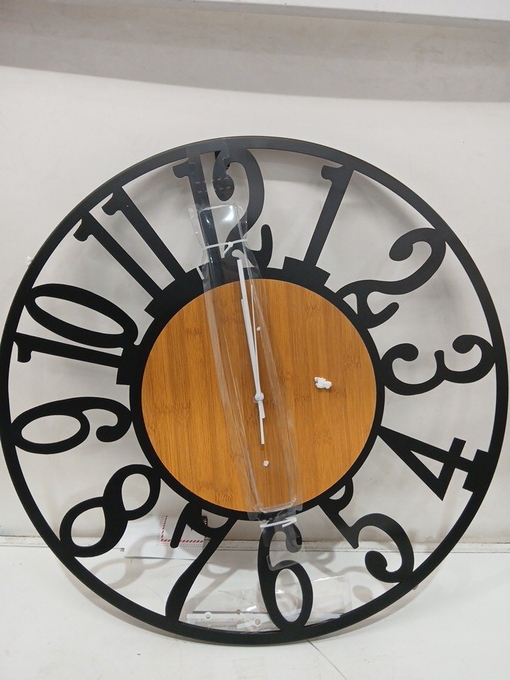 maxstar large Retro Style Metal Wood Nature round wall clock - 24" - black/brown