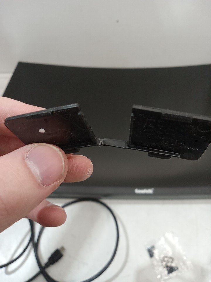 one of the connecter pieces for the stand is broken, but other then that the monitor is fine. please see photos