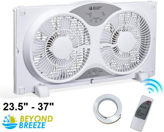 BREEZE BEYOND TWIN WINDOW FAN WITH REMOTE - Reversible Airflow 9" Dual Window Fan with 3-Speed - White (Model: BBWF9-01)