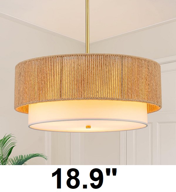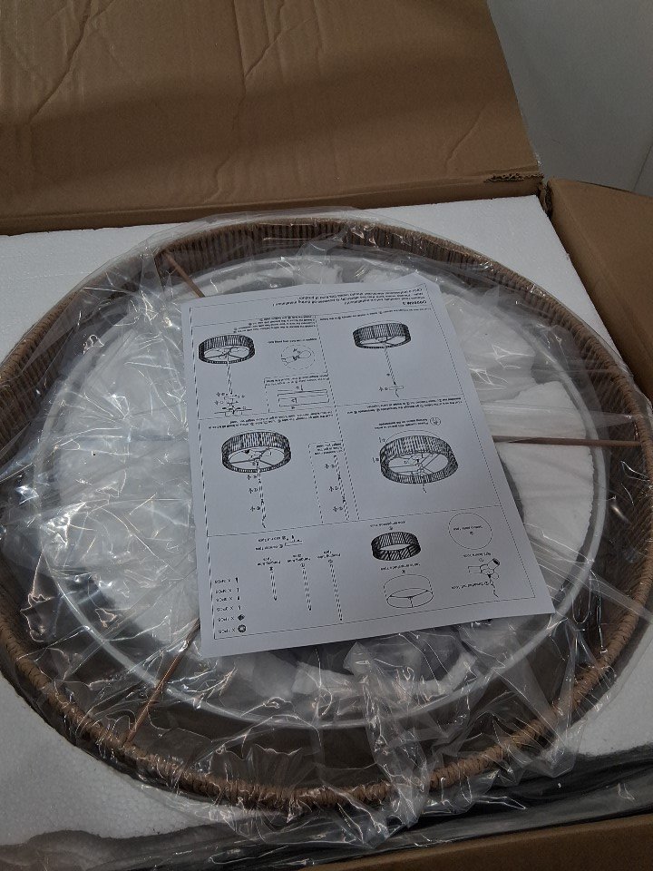 Farmhouse boho Rattan 3 light Chandelier - 18.9" - beige/cream