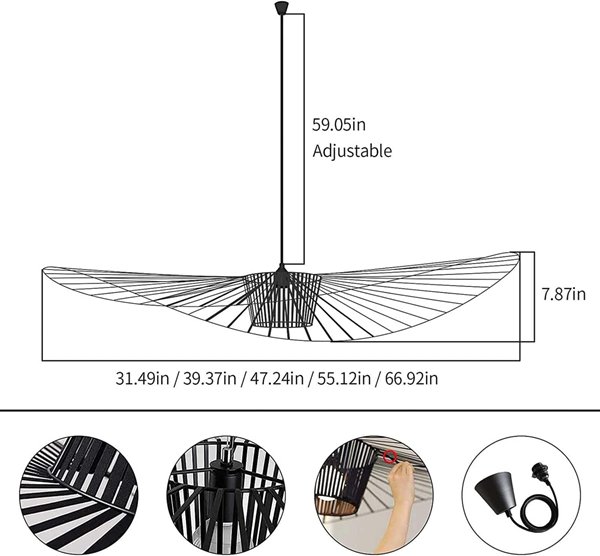 XHDM Hanging Height adjustable Vertigo Chandelier Pendant Light - 240V - 42W - 31.5" Black