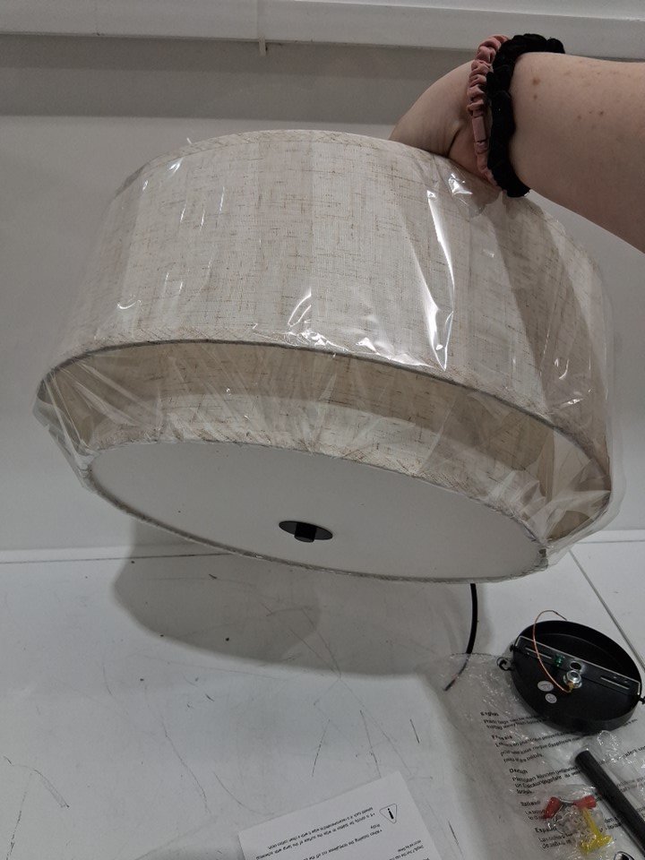 Calokes 3-Light Dual Drum Lenin Semi Flush Mount Ceiling Light - 16" x 12" - White with BLACK BASE (Model: ICL-BD-001)