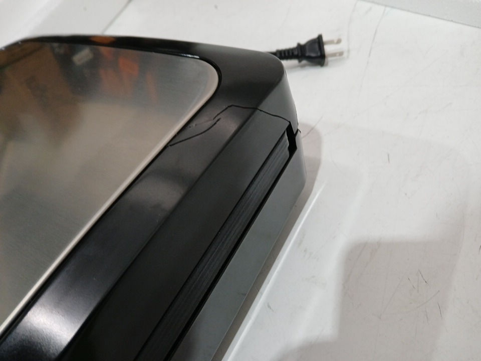 crack on side of unit, tested for power and function light oil and food residue indicates use