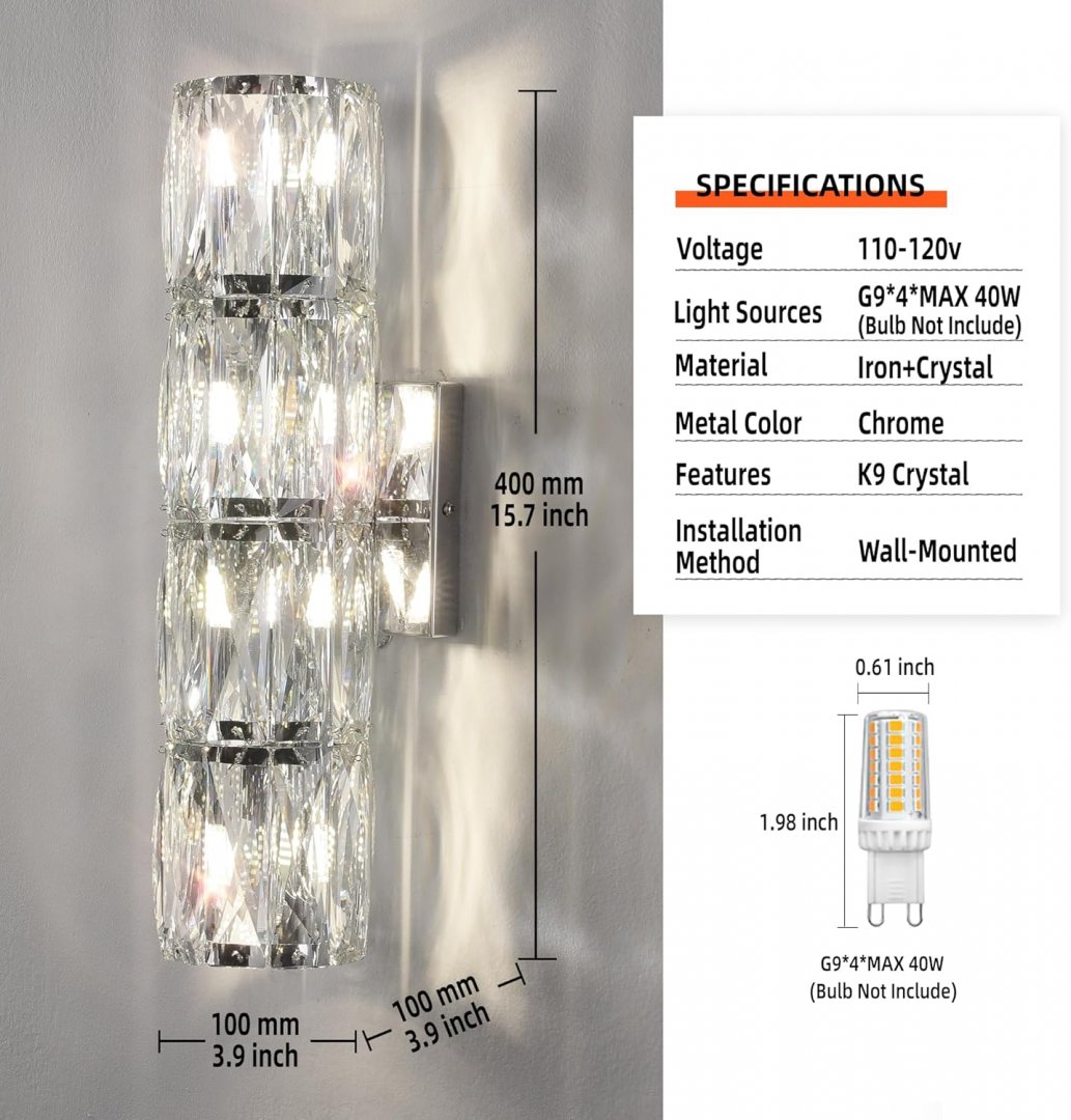 2PK losneolaz Modern CRYSTAL Sconces Wall Decor - Nickel (MODEL: losws-01 )