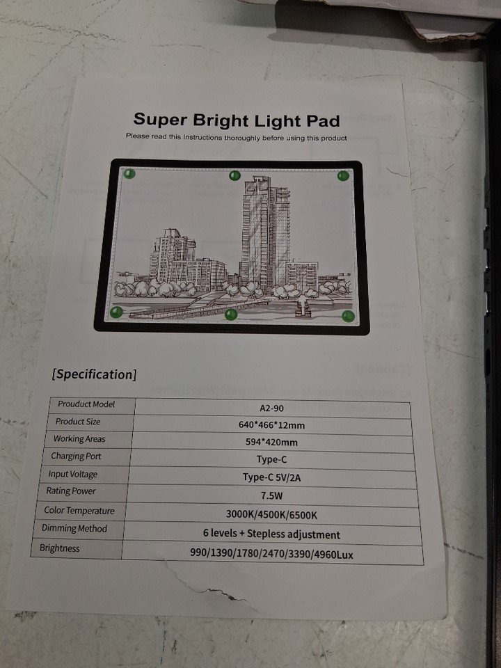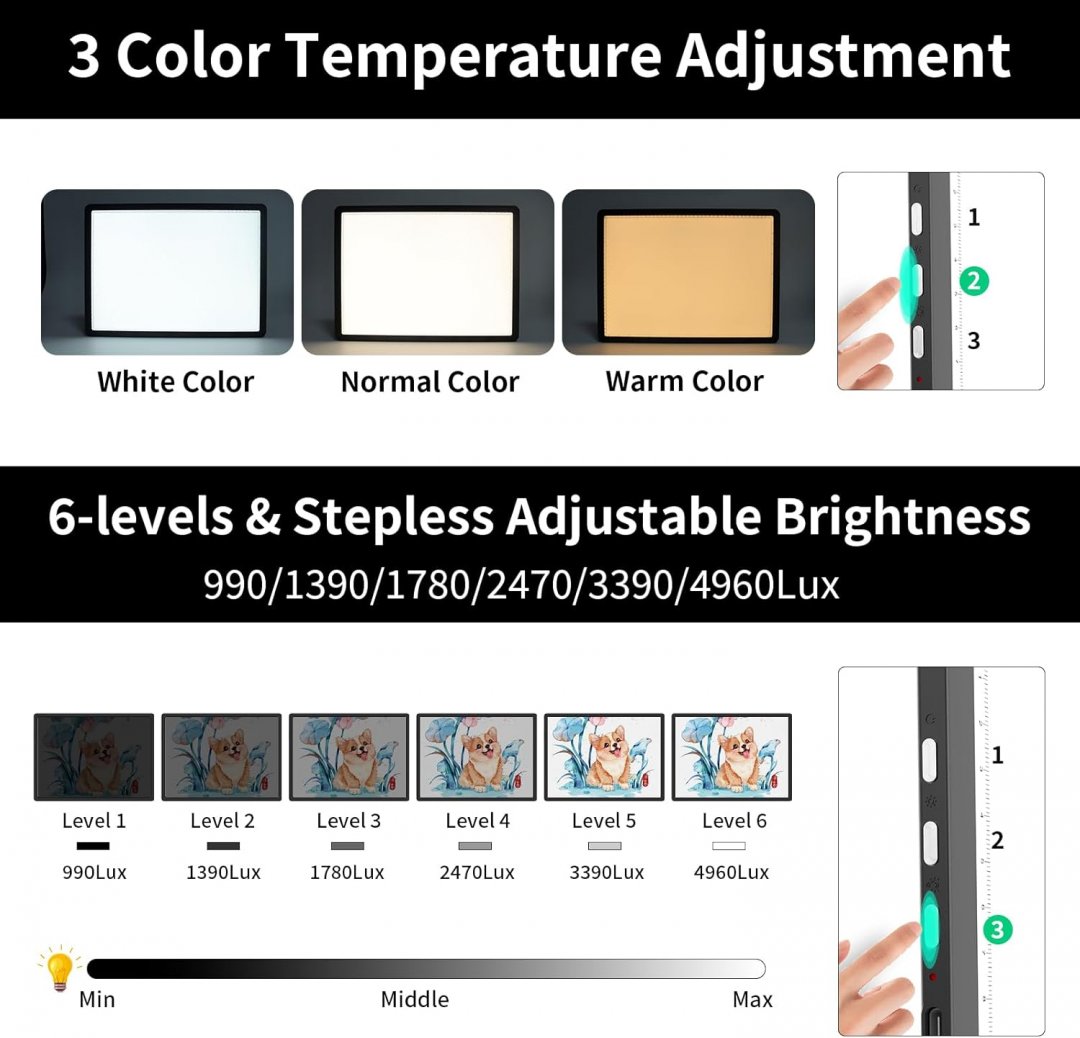 toheto Rechargeable A2 Light Pad with 3 colour modes and magnets - 25.2'' x 18.4'' - 6 brightness levels - black (model: a2-90-01)