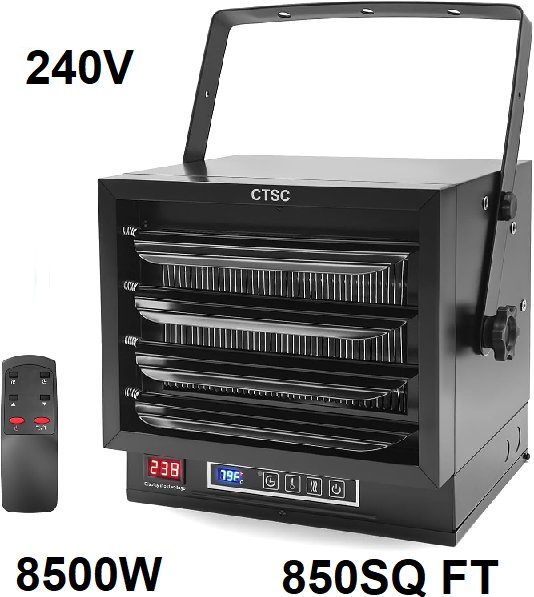 CTSC hard wired electric garage heater up to 850 Square ft - 8500W/240V - Black
