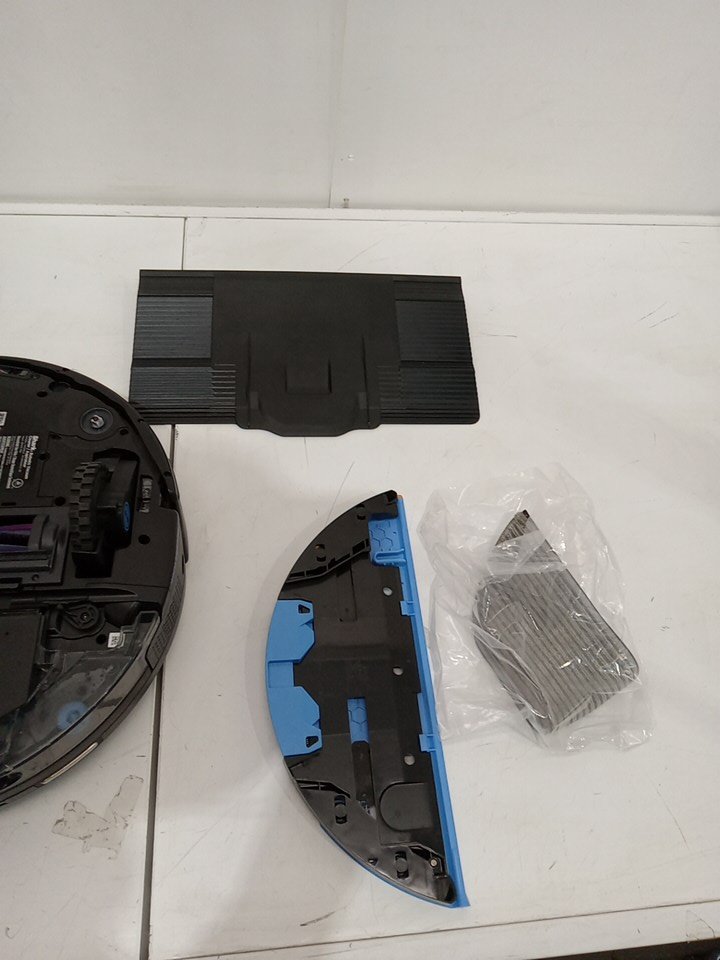 Item tested for power, charging, basic functionality and wifi/app connectivity. Unable to fully test item due to it's nature and the limitations of our network. There is dust/debris on/inside both the base station and the robot vacuum as a result from previous use. There may be some minor scuffs/scratches on the housing of the robot vacuum. Item is being marked with issue as it is missing the extra mop pad and the side brush for the robot vacuum. Customer will at least require purchasing the side brush in order to use the item correctly. See attached photos.