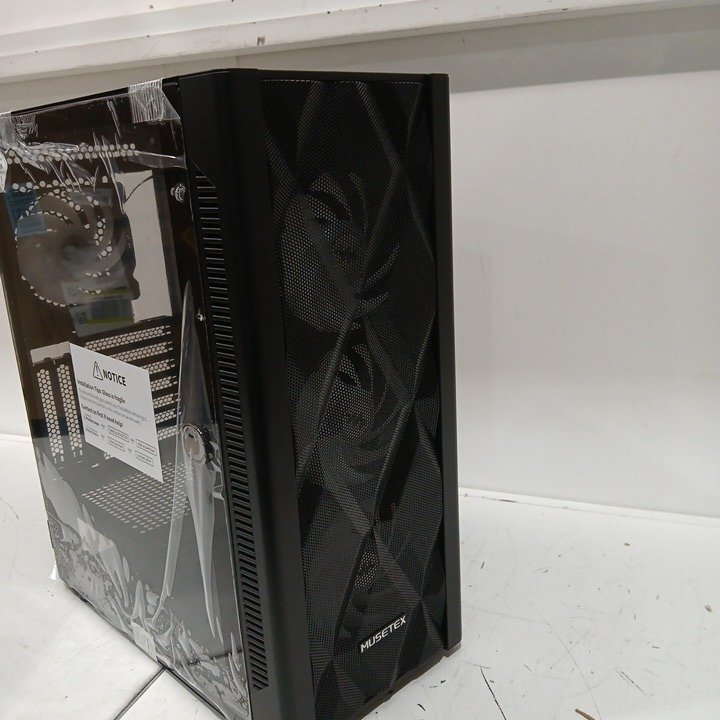 MUSETEX ATX PC Case, 6 x 120 mm PWM ARGB Fans pre-Install, Polygonal Mesh Gaming PC Case, Opening Tempered Glass Side Door Computer Case, Mid-Tower Case, USB 3.0 x 2 - Black- black (MODEL: NN8)